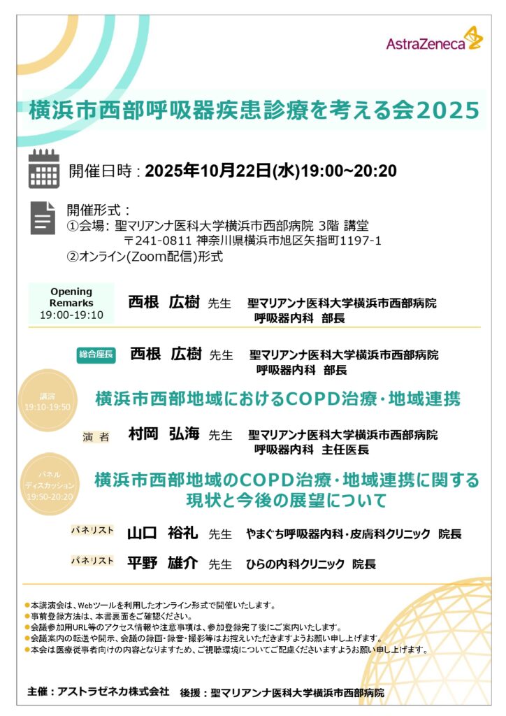 このたび、「横浜市西部呼吸器疾患診療を考える会2025」 に、
