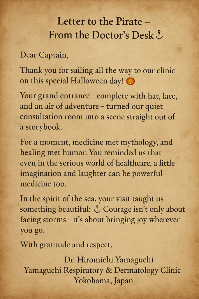 クリニックだより2025年10月31日🎃ハロウィンの日、クリニックにパイレーツが現れた!?⚓️✨ クリニックだより2025年10月31日🎃ハロウィンの日、クリニックにパイレーツが現れた!?⚓️✨