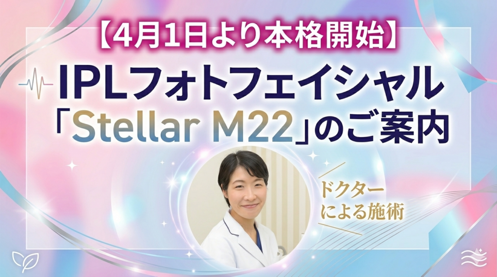 明日4月1日より、美容皮膚科〈肌運気™〉にて IPLフォトフェイシャル「Stellar M22(ステラM22)」を本格的に開始いたします。