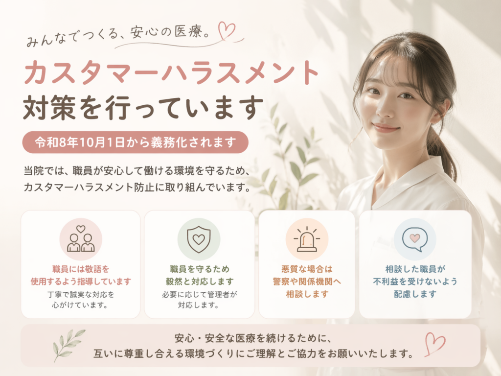 安心して通えるクリニックへ|カスタマーハラスメント対策について