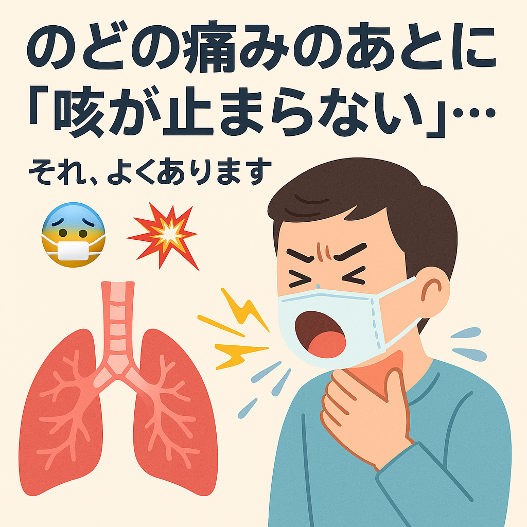のどの痛みのあとに「咳が止まらない」…それ、よくあります😷💥