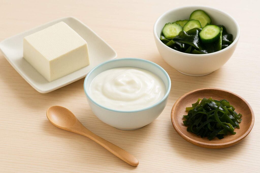大豆食品・ヨーグルト・海藻・きのこ・果物など