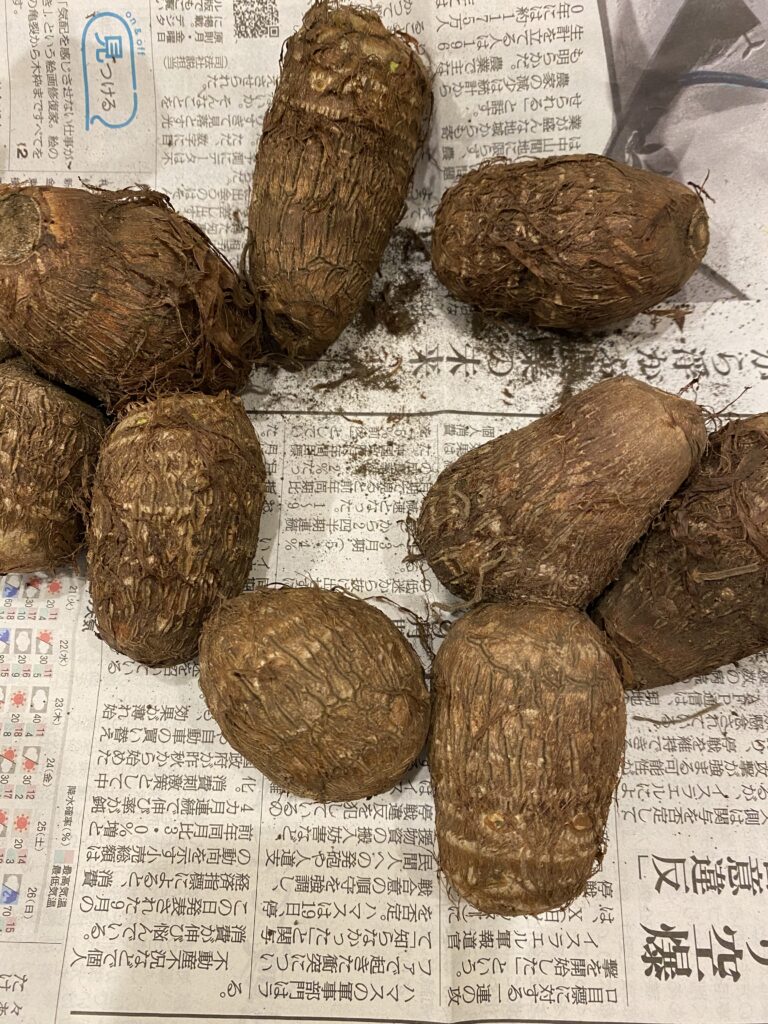 📦 「自分の畑で育てた里芋です。水やりが大変だったけど、なんとか育ちました」