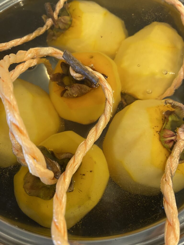 皮をむいた柿は、軽く熱湯消毒を行い、