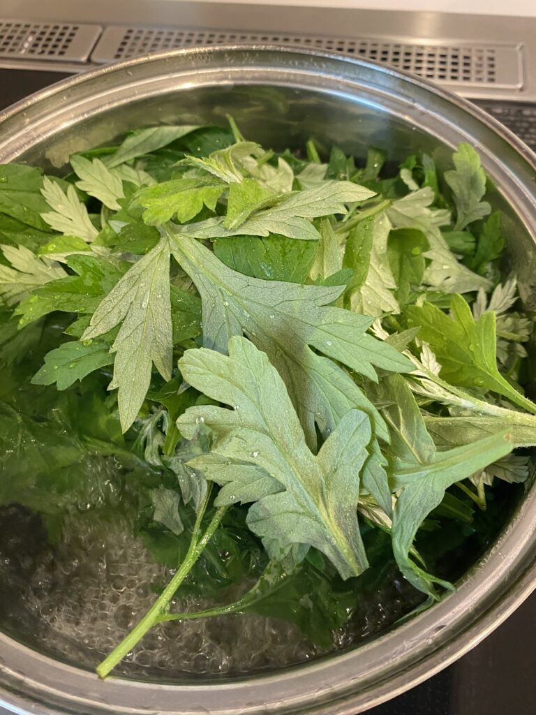 よもぎ、ついに食べました🌿― 丁寧にあく抜きして、白玉に ―